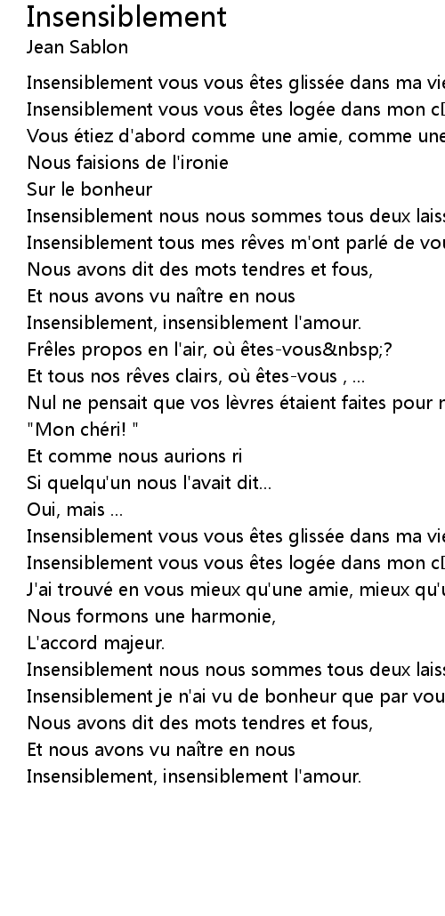 | Insensiblement tous mes r ves m' ont parle de vous | |