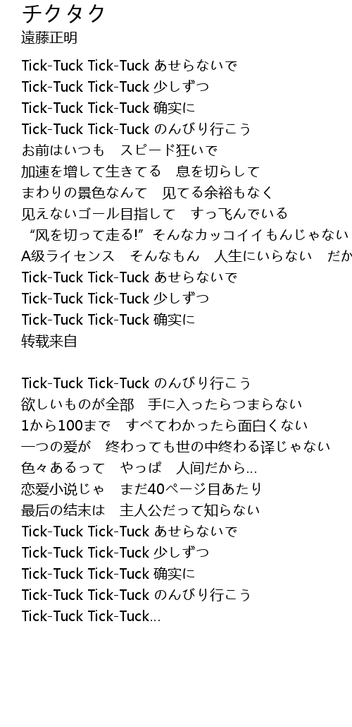 | Tick-Tuck Tick-Tuck のんびり行こう | |