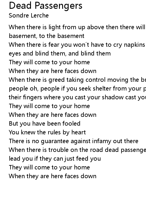 | When there is trouble on the road dead passengers will guide you home they will lead you if they can just feed you | |