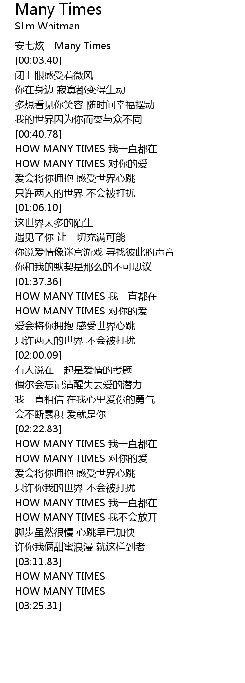 | [03:18.47] | HOW MANY TIMES |