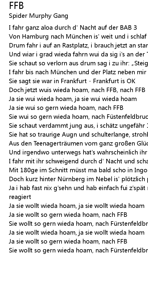 | Ja sie wui so gern wieda hoam, nach FFB | |