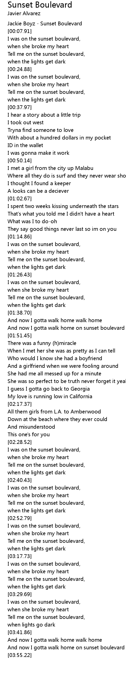 And now I gotta walk home on sunset boulevard |
