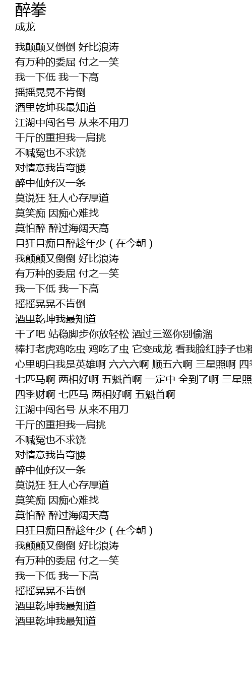 | 歌曲 | 醉拳 |