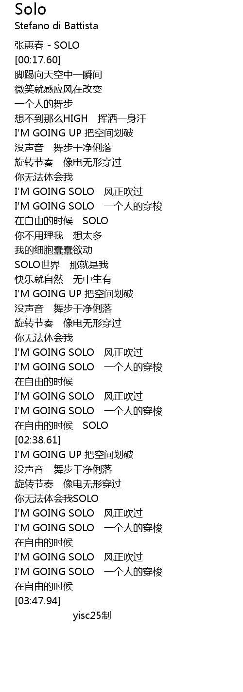| [03:36.02] | I' M GOING SOLO yi ge ren de chuan suo |