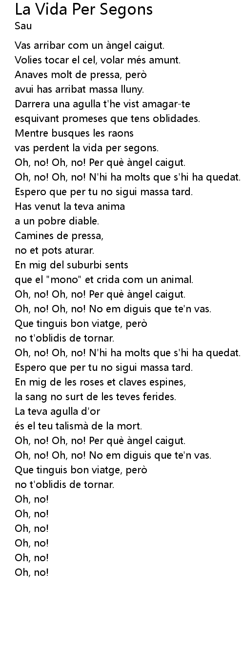| Oh, no! Oh, no! Per que a ngel caigut. | |