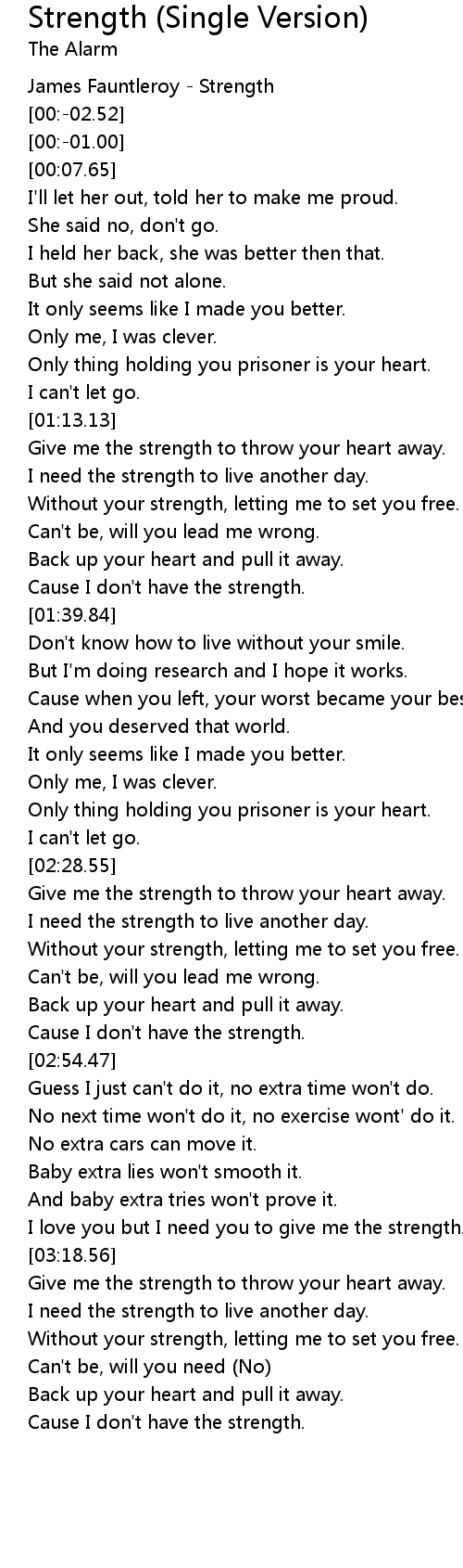 | [03:15.60] | I love you but I need you to give me the strength. |