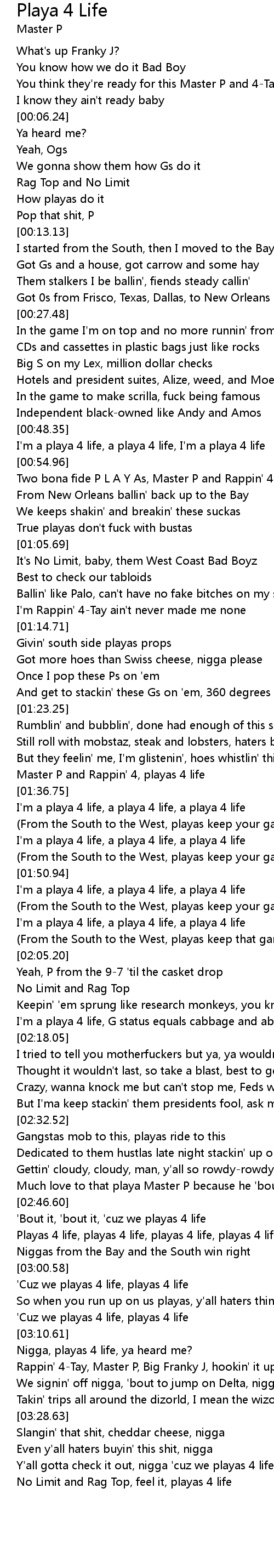 I'm a playa 4 life, a playa 4 life, I'm a playa 4 life |