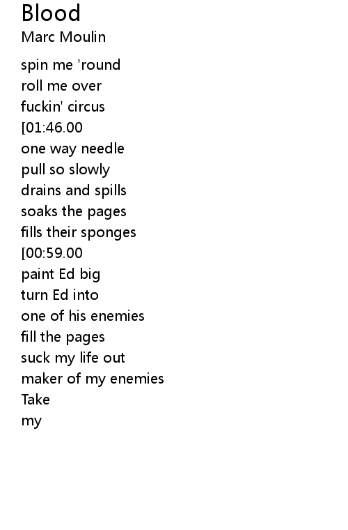 | [00:53.00][00:59.00][01:23.00][01:30.00][01:39.00] | its my blood |