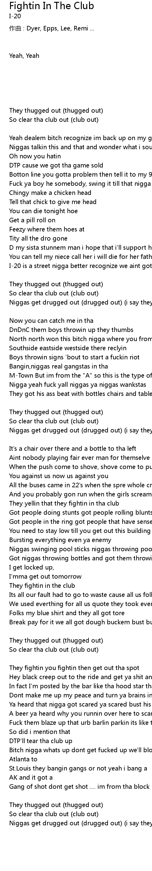| They fightin in tha club Chorus: I20 Chingy repeat 2x | |
