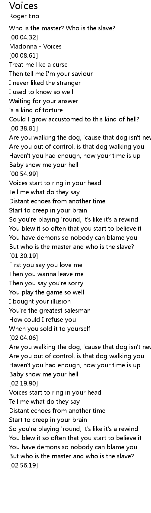 | [00:06.61] | Madonna - Voices |