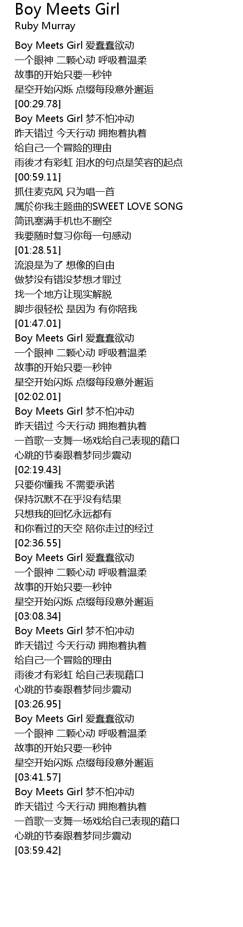 | [00:30.11] | Boy Meets Girl mèng bù pà chōng dòng |