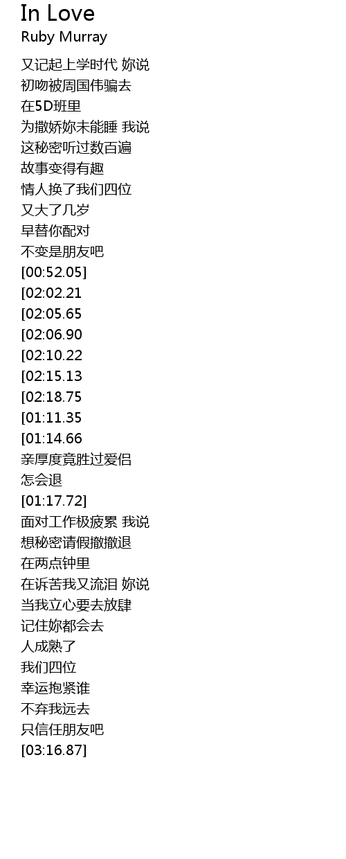 | [02:52.01][02:02.21][00:53.51] | 我们注定成密友 |