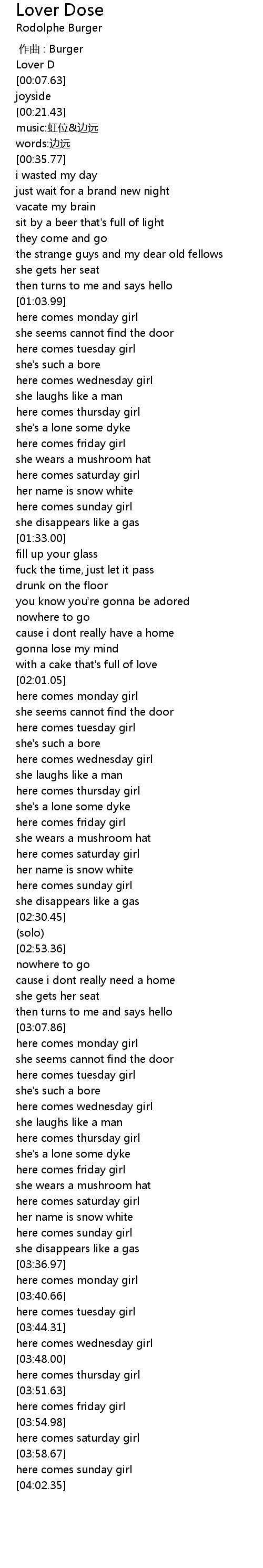 | [02:03.18] | here comes monday girl |