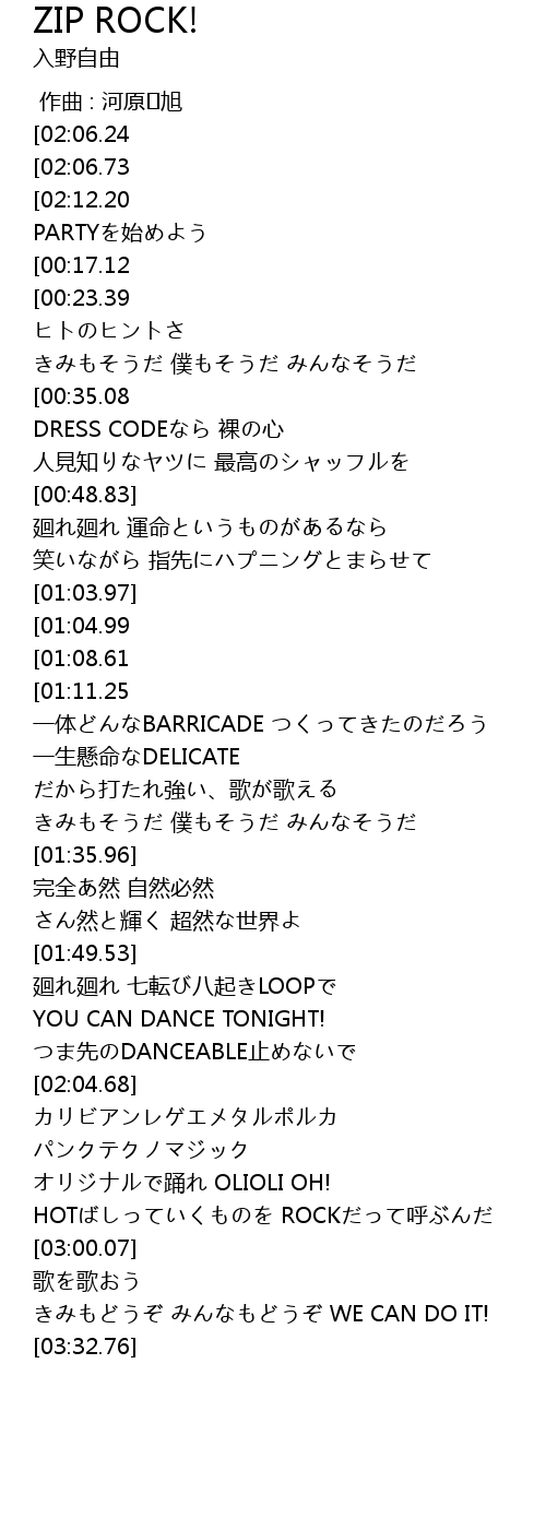 | [03:15.05][02:06.24][00:04.47] | ZIP ROCK! |