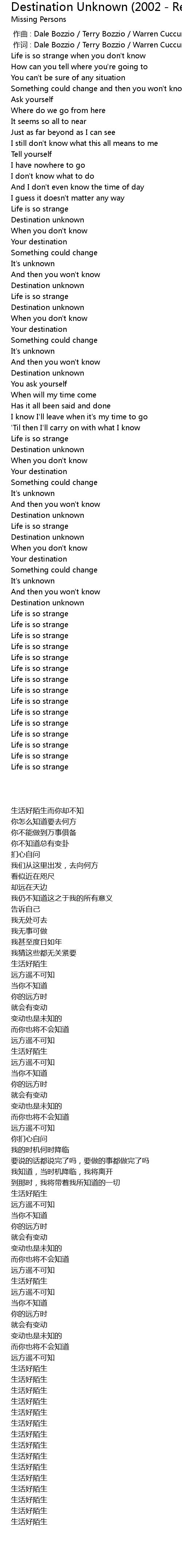 | 歌曲 | Destination Unknown (2002 - Remaster) |