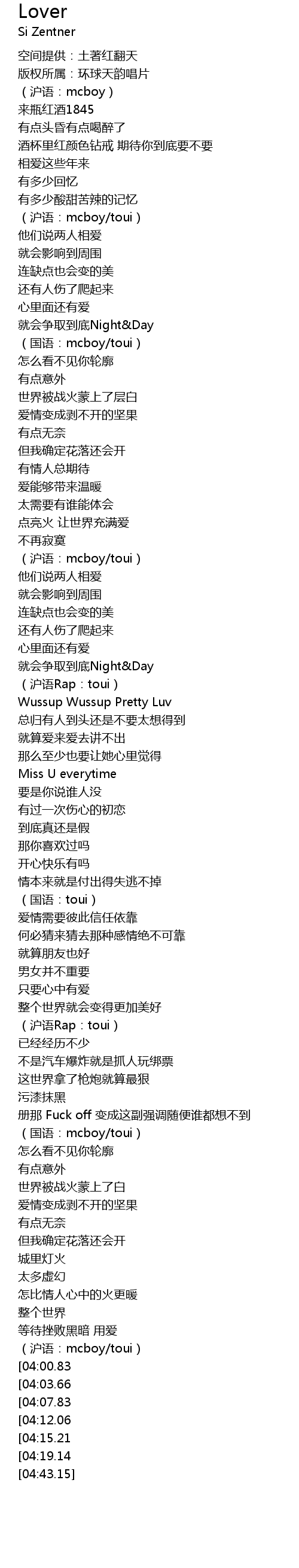 | [01:53.00] | (沪语:mcboy/toui) |