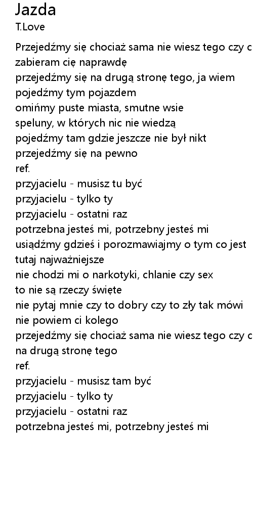 | Przejedźmy się chociaż sama nie wiesz tego czy chcesz | |