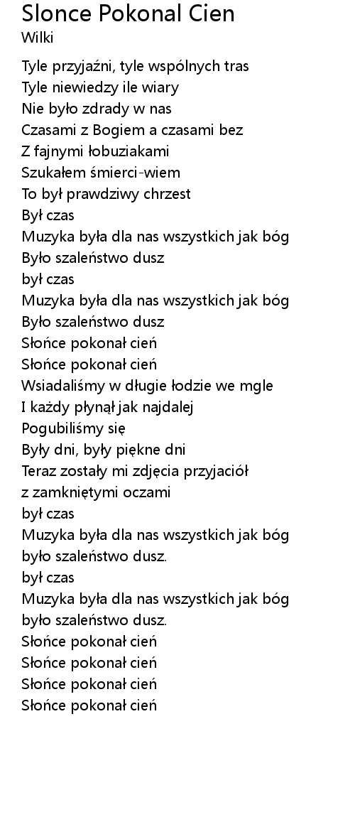 | [01:23.34] | Słońce pokonał cień |