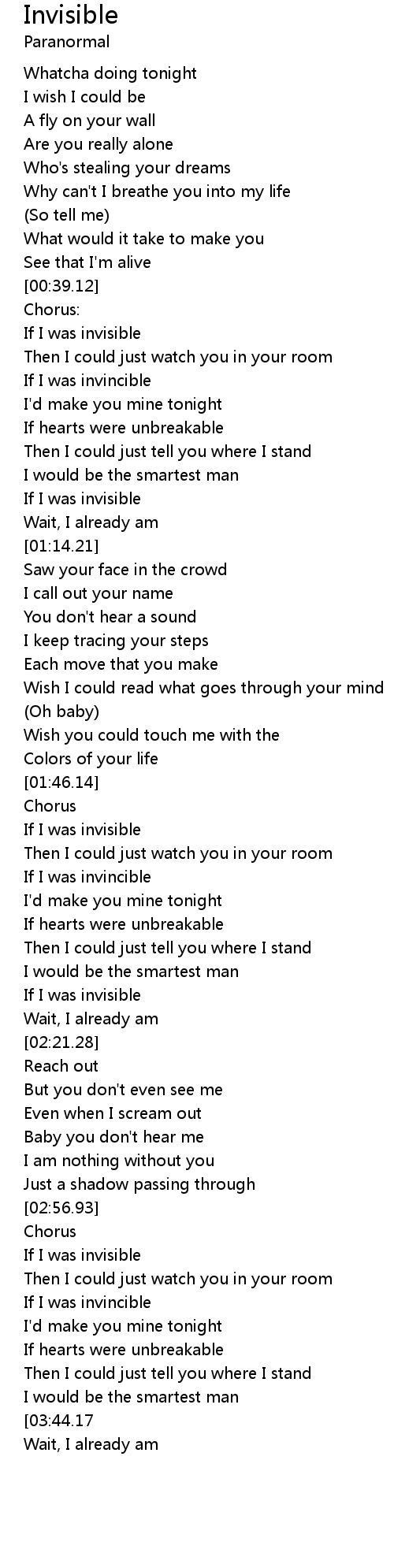 [03:48.60][03:44.17][03:30.96] If I was invisible