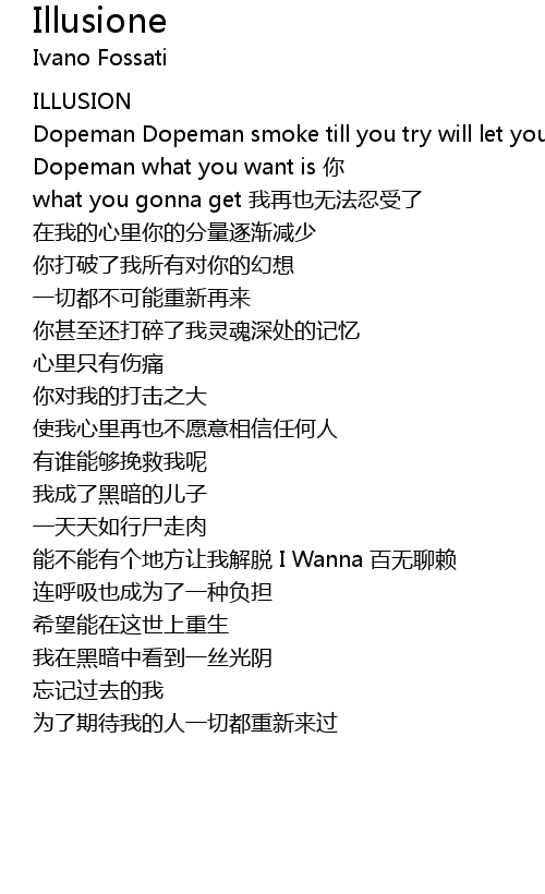 | [00:23.57] | Dopeman Dopeman smoke till you try will let you so high Dopeman Dopeman what you want is nǐ |