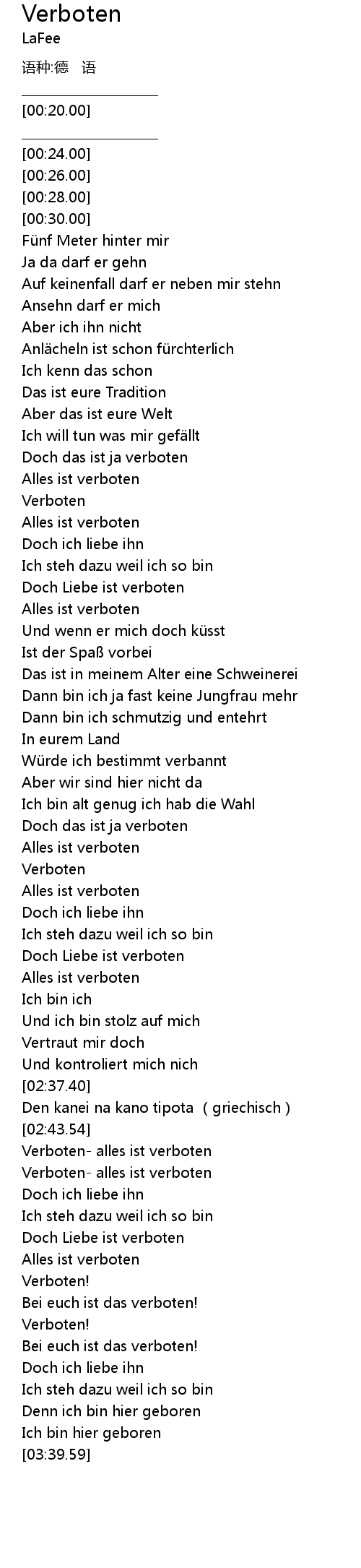 | [01:39.92] | Dann bin ich schmutzig und entehrt |