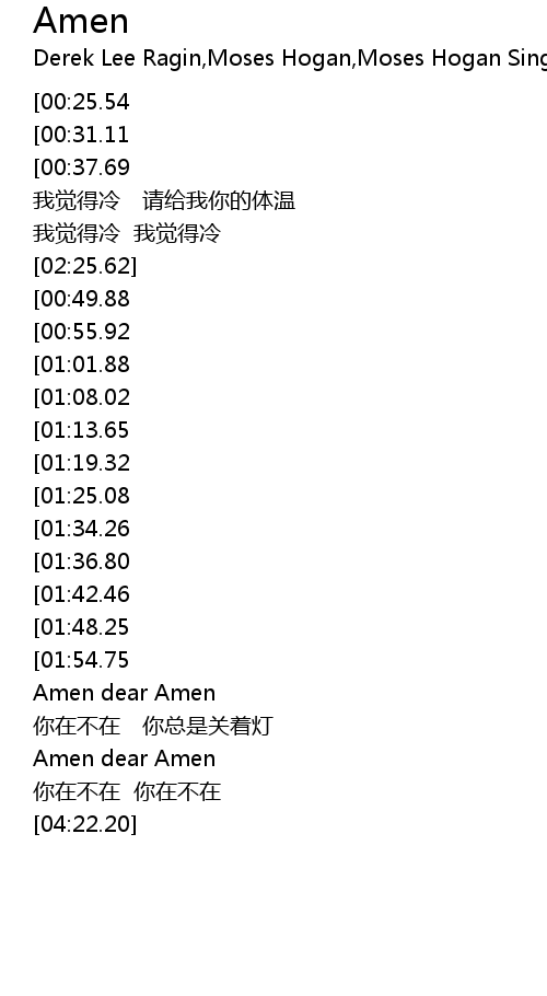 | [03:49.79][01:54.75] | Amen Amen |