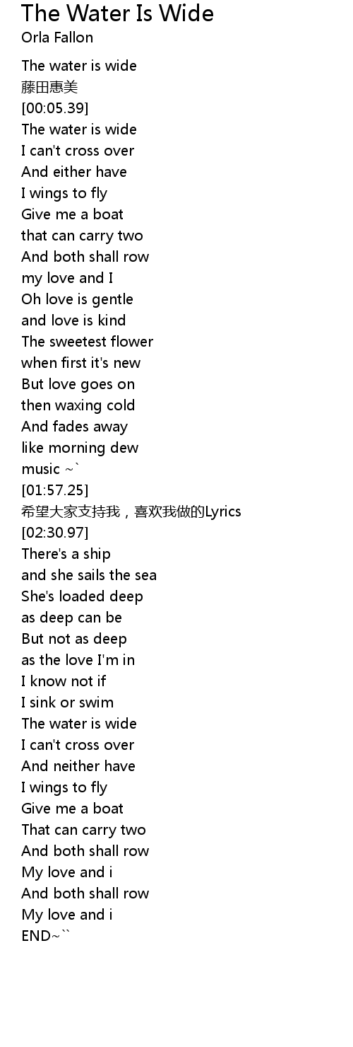 | [00:00.76] | The water is wide |