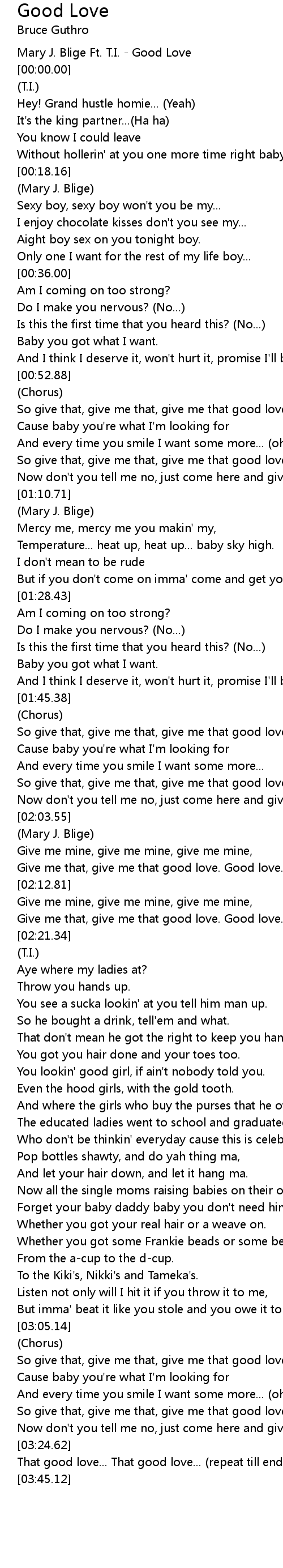 Give me that, give me that good love. Good love. (uh uh ohh) |