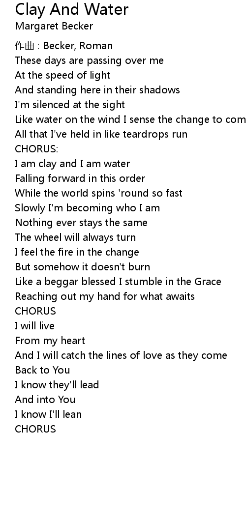 | 歌曲 | Clay And Water |