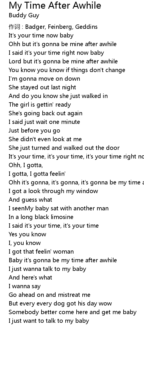 | Ohh it' s gonna, it' s gonna, it' s gonna be my time after awhile | |