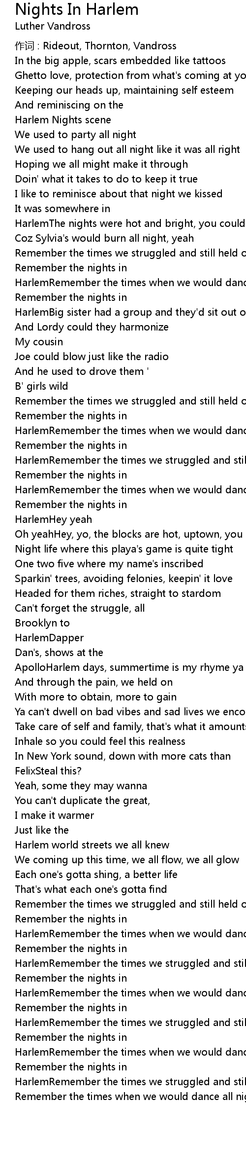 | HarlemRemember the times we struggled and still held on | |
