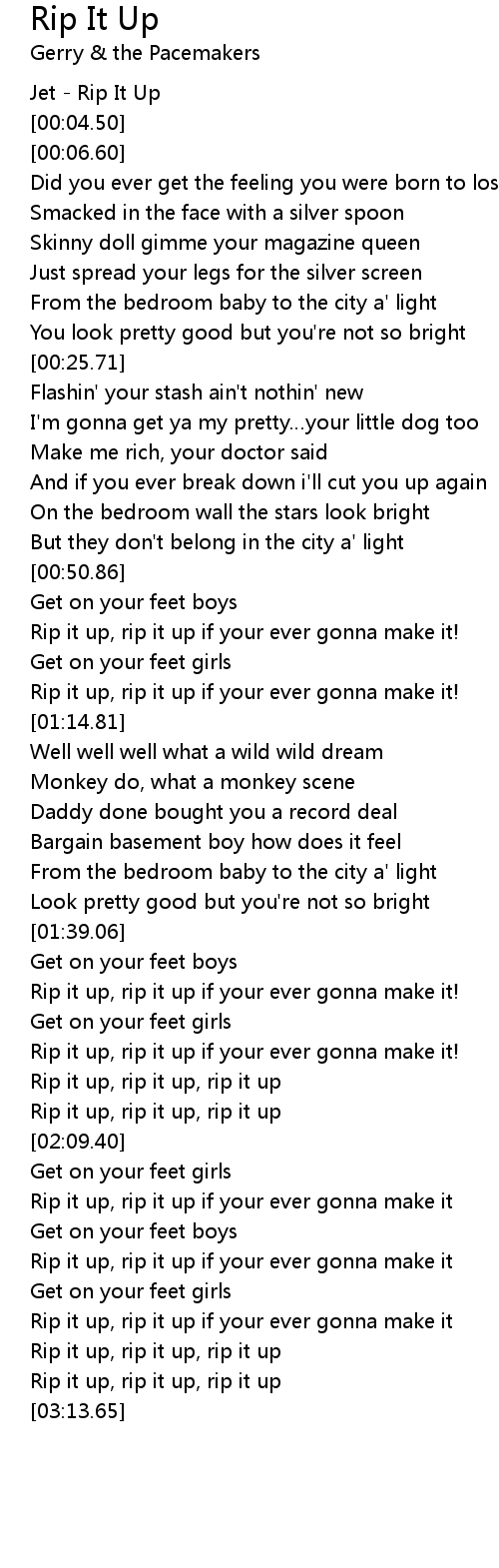 | [03:04.11] | Rip it up, rip it up if your ever gonna make it |