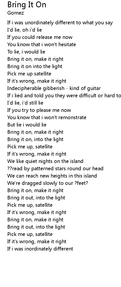 Bring it on, make it right |