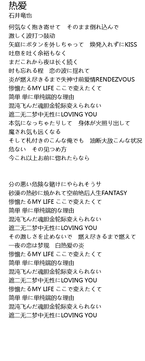 | その激しさを止めないで 燃え尽きるまで燃えて | |