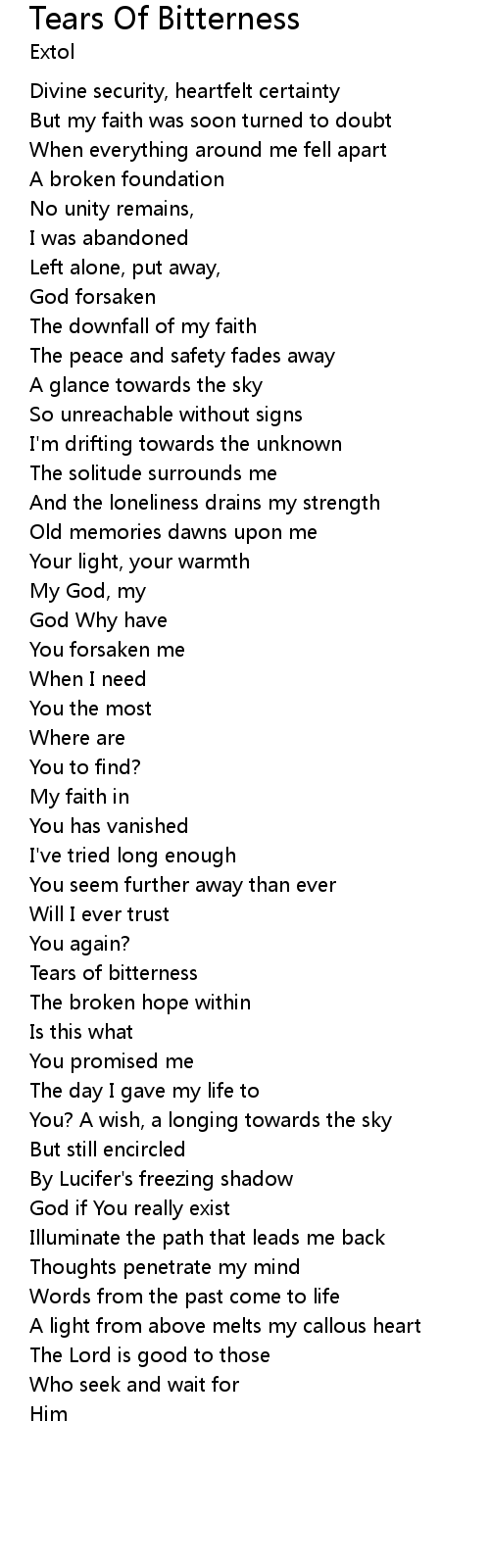 Tears Of Bitterness 歌词