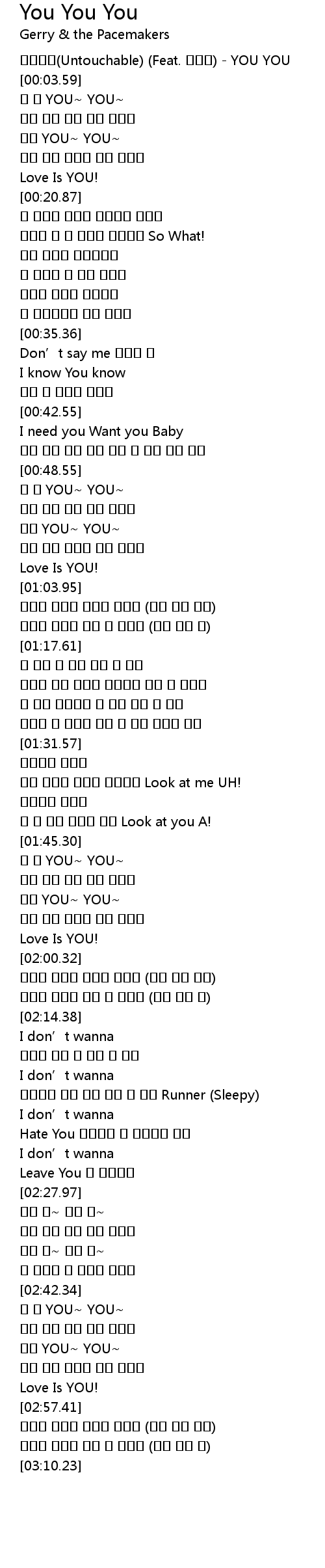 | [00:00.03] | 언터쳐블(Untouchable) (Feat. 오진석) - YOU YOU |