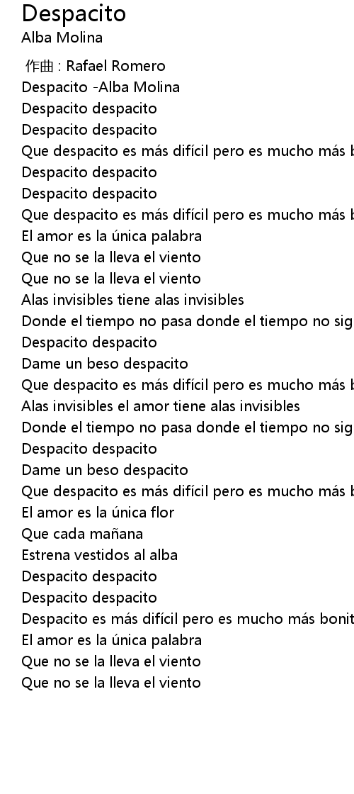 | [02:56.360] | Despacito es má s difí cil pero es mucho má s bonito |