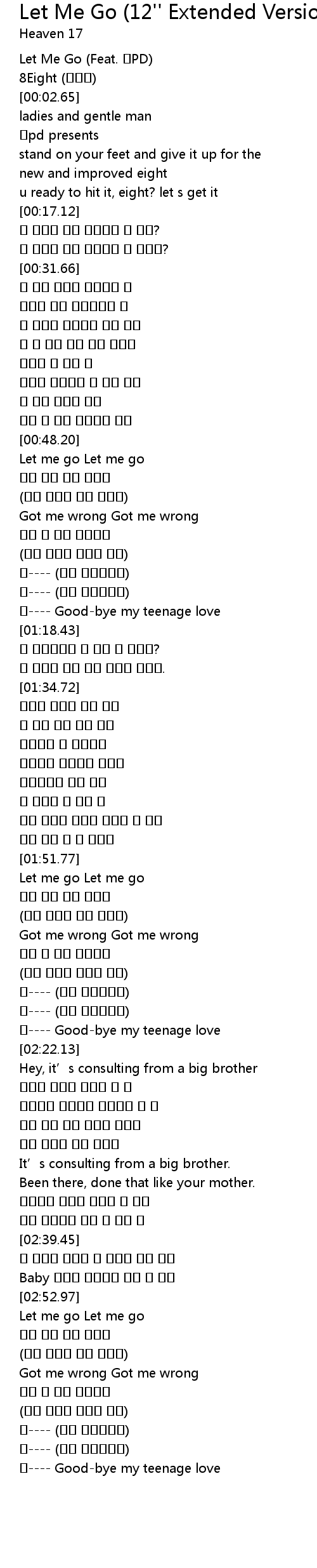 | [00:00.25] | Let Me Go (Feat. 조PD) |