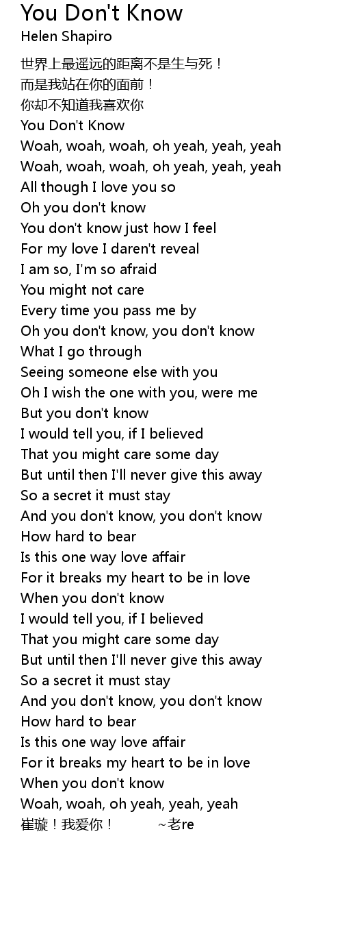| [00:00.40] | You Don't Know |