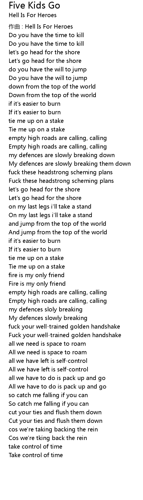| 歌曲 | Five Kids Go |