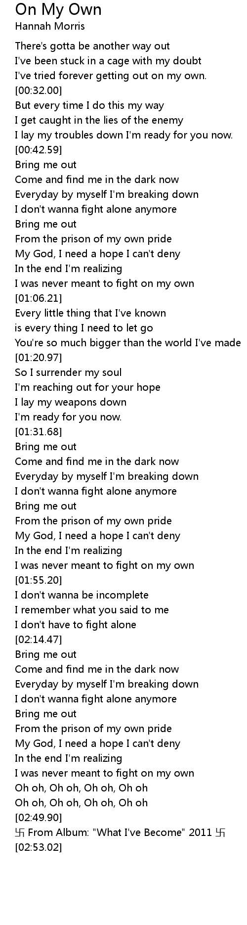 | [00:27.73] | I've tried forever getting out on my own. |