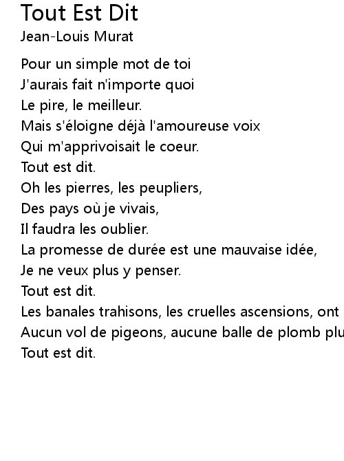 | 歌曲 | Tout Est Dit |