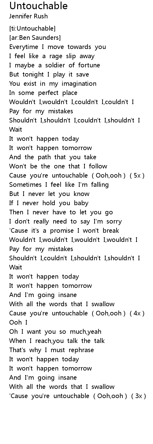 | [01:20.128] | Cause you're untouchable (Ooh,ooh)(5x) |