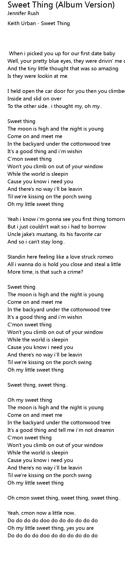 Oh cmon sweet thing, sweet thing, sweet thing.. |
