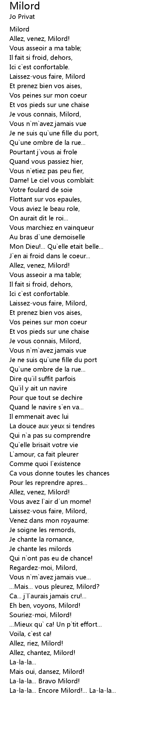 Allez, chantez, Milord! |