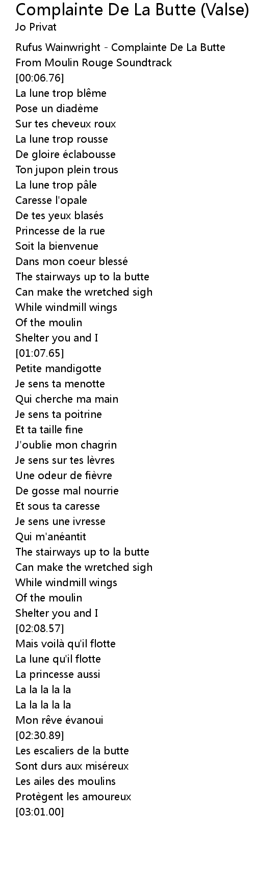 | [00:00.00] | Rufus Wainwright - Complainte De La Butte |