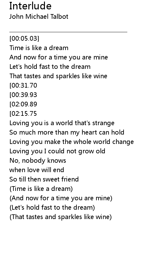 [02:22.15][02:09.89][00:44.10] What seem like an interlude now