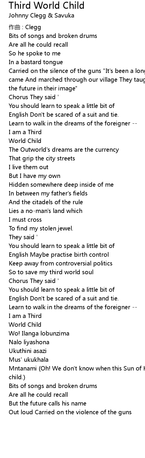 | 歌曲 | Third World Child |