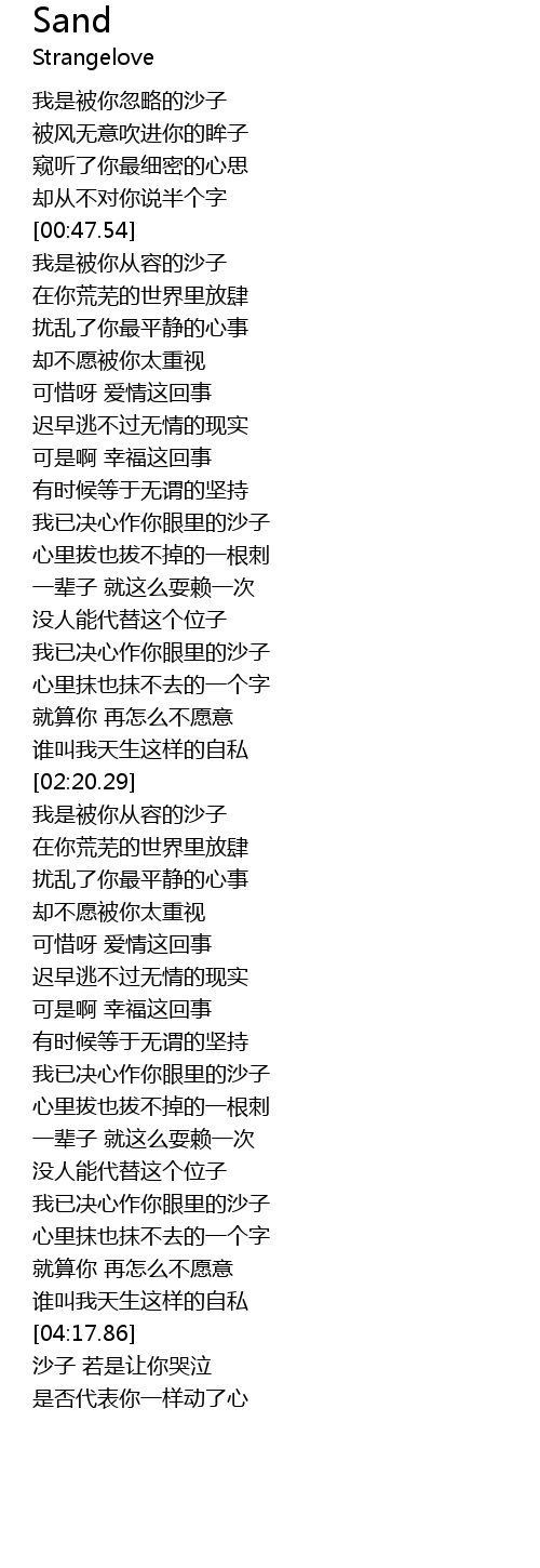 | [04:19.68] | 沙子 若是让你哭泣 |