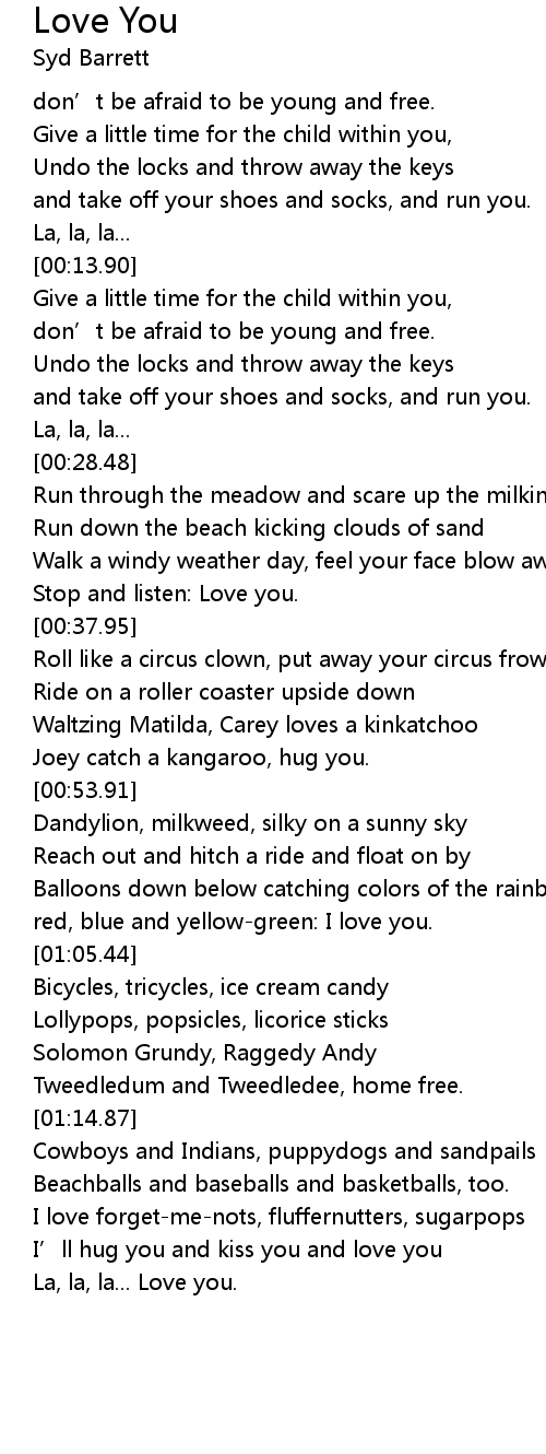 | [01:41.81] | La, la, la... Love you. |